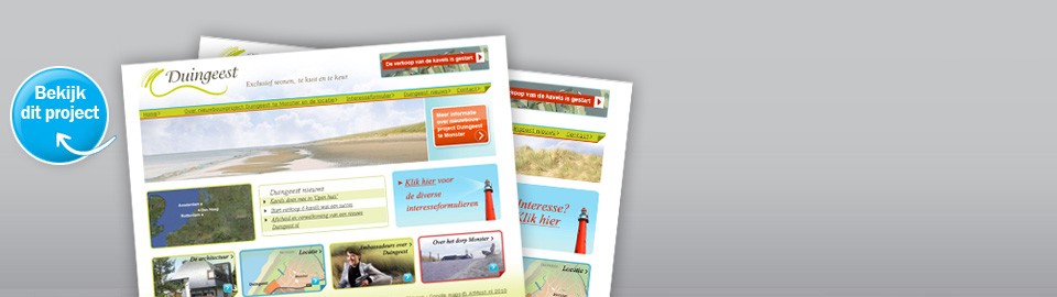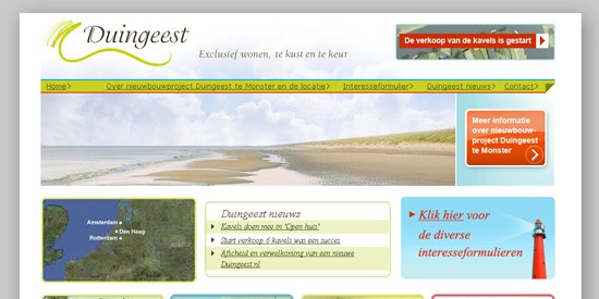 Duingeest is een ambitieus project van vastgoedontwikkelaar Bouwfonds/BPD. Uniek gezien de ligging in Monster en aan de zee en in de duinen en uniek qua online branding en uitstraling.