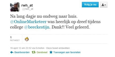De praktijk dus. En dat is het enige dat telt. ‘Actief aan de slag met Sociale Media’ is een college behorend bij de het DIM college of de postHBO Social Media van opleider @Beeckestijn Business School.